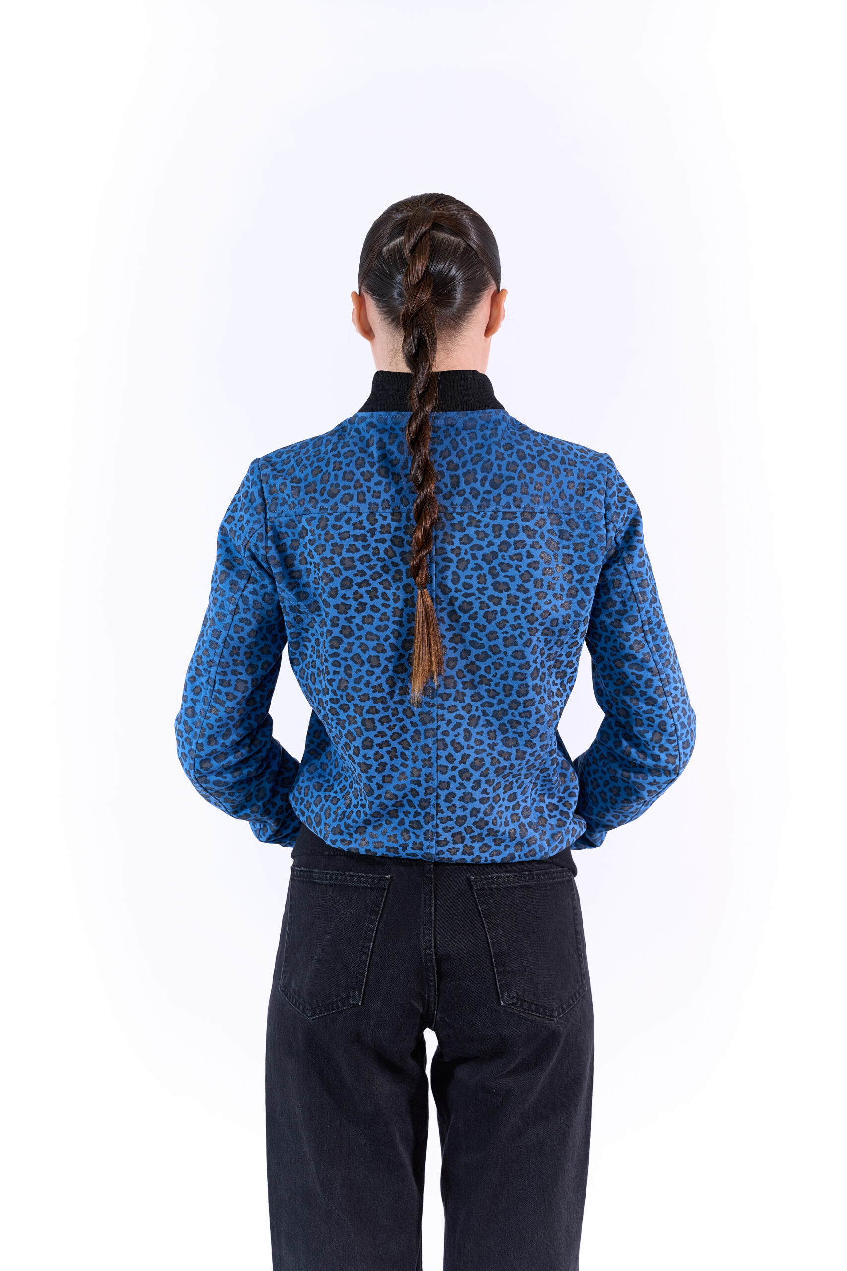 For inquiries, ordering and pricing please contact us at: info@rajeevfernando.com- This suede jacket showcases a bold blue cheetah print for a unique, fashion-driven appearance. Soft to the touch with a tailored fit, it delivers comfort and standout style in one statement piece.